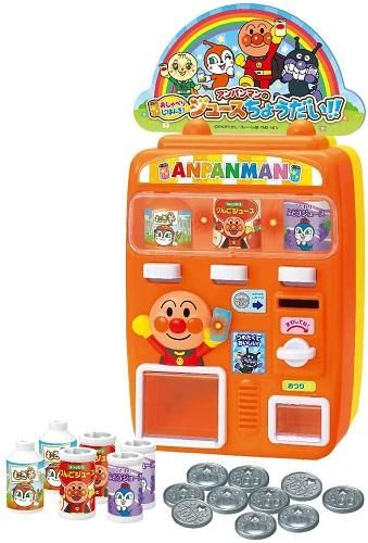大人気の「じはんきだいすき アンパンマンのジュースちょうだい」をリニューアル! カラーリングを鮮やかで目を引くオレンジ色に変更し、シールデザインも一新! コインを入れてレバーを下げると、アンパンマンの持っている缶が光り、なかまたちのおしゃべりが流れます。