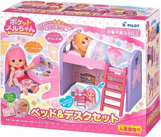 ポケットメルちゃん パーツ ベッド&デスクセット【新品】 パイロットインキ メルちゃん (着せ替え人形・知育玩具) 【宅配便のみ】