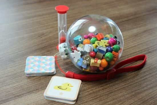 子どもの目をひき、そのままインテリアにもできそうなデザインを目指して作っています。探す時の音も軽快なしゃかしゃか音になるように、中身のトークンはすべて木製にこだわって揃えました。